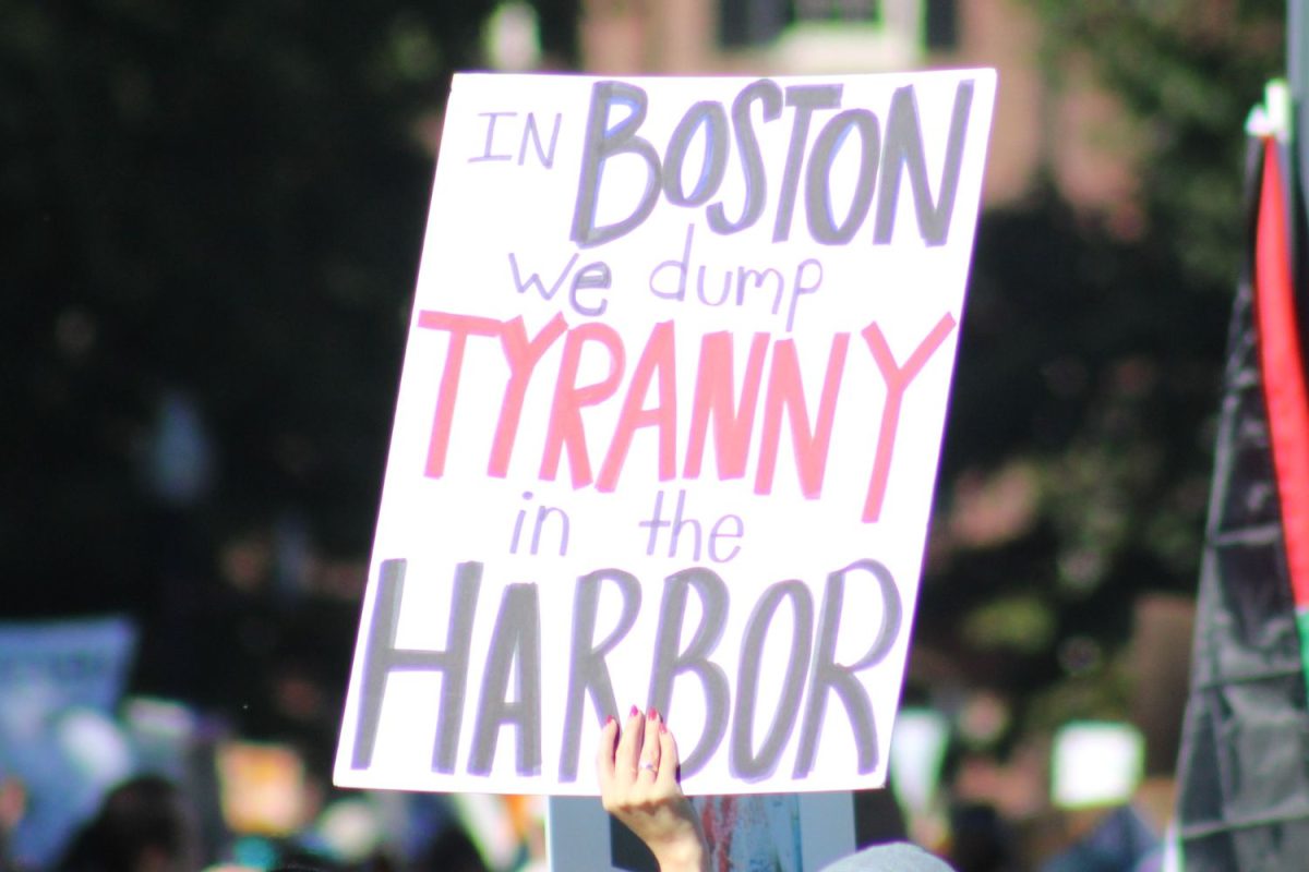 Chants of “Resist,” “This is what democracy looks like,” and “The people united will never be defeated” could be heard as thousands of signs blanketed the Common’s parade grounds.
